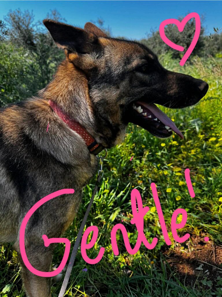 As her name suggests, she is a very kind and gentle soul. We need to check her age but she weighs 26kg and measures 70 cms from the ground to the top of her head and 94 cms from the end of her nose to the base of her tail. She gets on really well with other dogs, keeps out of trouble and enjoys human attention. Video available upon request.