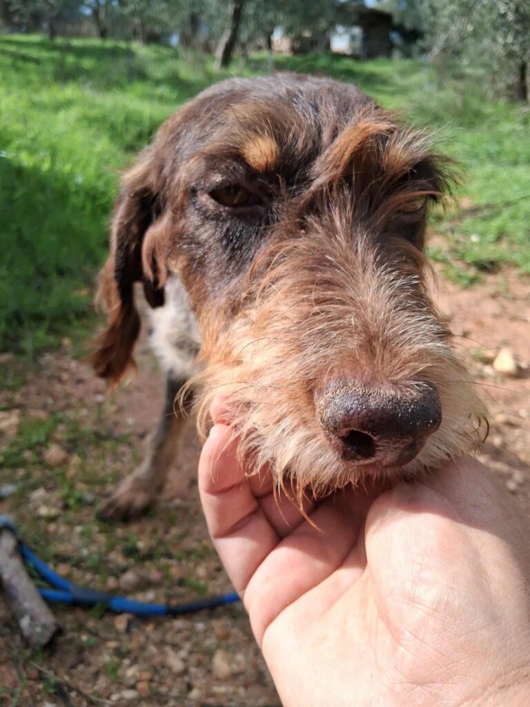She is a very friendly, confident girl who is estimated to be between 5-6 years old. She only weighs 15kg and has medium energy levels. She measures 58 cms from the ground to the top of her head (whilst standing) and 74 cms from the end of her nose to the base of her tail. She will l be a great addition to a family and would love a home .